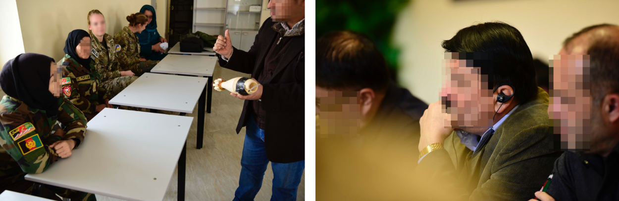 Training en advies aan de Afghaanse politie is voor Nederland een belangrijke focus. Sommige gesprekspartners kennen wel wat Engels, maar ook hier is een tolk noodzakelijk.