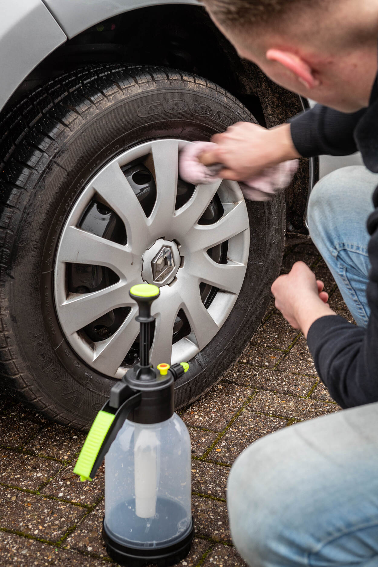 Speurend naar een frisse aanpak, kwam PNOD na een tip terecht bij het bedrijf EcoSplash in Rotterdam, specialist in ecologisch autowassen. Ofwel: reinigen zonder schade voor het milieu, dus zonder zeep, shampoo, spoelwater. Een proef op de Van Ghentkazerne in de Maasstad pakte gunstig uit. “Ik viel bijna van mijn stoel van verbazing, zó schoon waren de auto’s na afloop”, glimlacht Zondag. “Dankzij de milieuvriendelijke spray was het vuil zo verdwenen. Dat kwam in plaats van in het milieu in de doeken terecht. Die zijn van een speciaal soort katoen, waarmee je ook het interieur van de auto kunt reinigen. Want ook dat verlangen we van de mensen… Na afloop gaan de doeken voor hergebruik naar de stomerij. Al met al waren we aangenaam verrast en zeiden we: ‘Dit is wat voor ons’.”