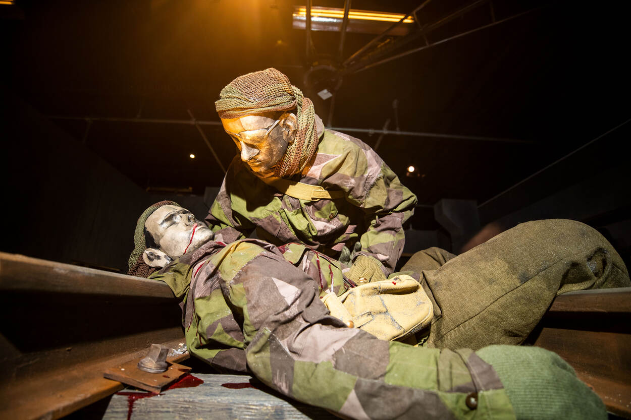 De hoeveelheid voertuigen maakt indruk, maar de belevenissen van bevrijder Léo Major en bezetter Hans Kürten blijven misschien nog langer hangen. In de vorm van levensechte diorama’s, ondersteund door licht- en geluidseffecten komt het rauwe modderige slagveld van de Tweede Wereldoorlog binnen. De mannen hebben echt bestaan, en hun militaire loopbaan toont grote paralellen. Aan de hand van de 2 militairen volg je het verhaal van de bevrijding van Europa vanaf 1944 tot in Nederland.