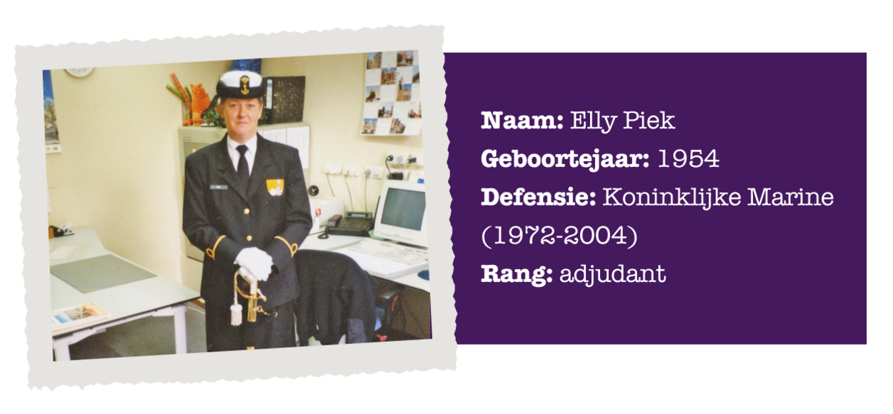 In 1944 treden de eerste vrouwen in dienst bij de Nederlandse krijgsmacht. Ze werken dan als bijvoorbeeld verpleegkundige, typiste of boekhoudster. Eind jaren 70 mogen vrouwelijke militairen ook varen, vliegen en vechten en sinds de jaren 90 voert Defensie een actief beleid om vrouwen te werven en te behouden. In deze rubriek komen de dames aan het woord die ervoor gezorgd hebben dat het na 75 jaar heel normaal is dat er vrouwen bij Defensie werken. Deze week vertelt Elly Piek haar verhaal.