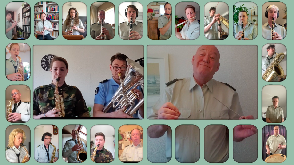130 muzikanten van de marine, landmacht, luchtmacht en marechaussee hebben met z’n allen een bijzondere uitvoering van de IGK-mars gemaakt. Ieder vanuit huis.