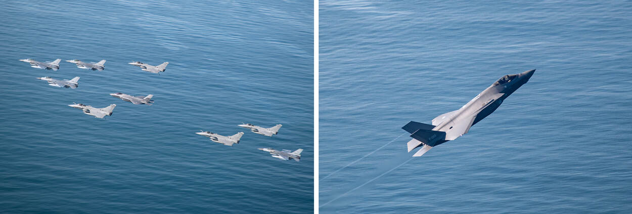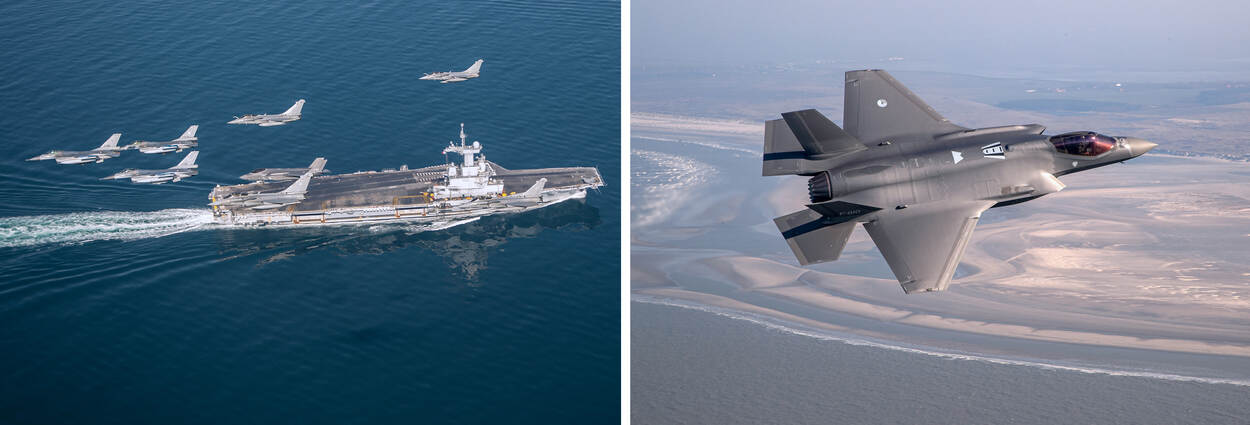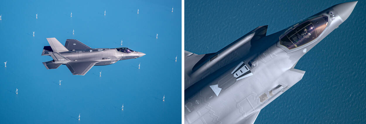 Anderhalve meter afstand houden? Dat is voor gevechtsvliegtuigen zoals de F-16 en F-35 in de lucht geen enkel probleem. Ook tijdens deze coronacrisis is inzetbaar blijven een must. Daarom oefenden vliegers van de luchtmacht de afgelopen maand zowel met de Amerikanen als de Fransen. Het resultaat: een visueel spektakel boven de Noordzee.