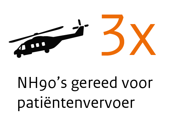 3 NH90’s staan gereed voor patiëntenvervoer. 2 daarvan hebben standaard een Medical Module aan boord. Waarom dan 3 kisten vrijspelen? Worstcasescenario is dat 1 van de heli’s in onderhoud is en de 2e niet start. Dan is er altijd een 3e kist die de ambulancetaak kan vervullen.