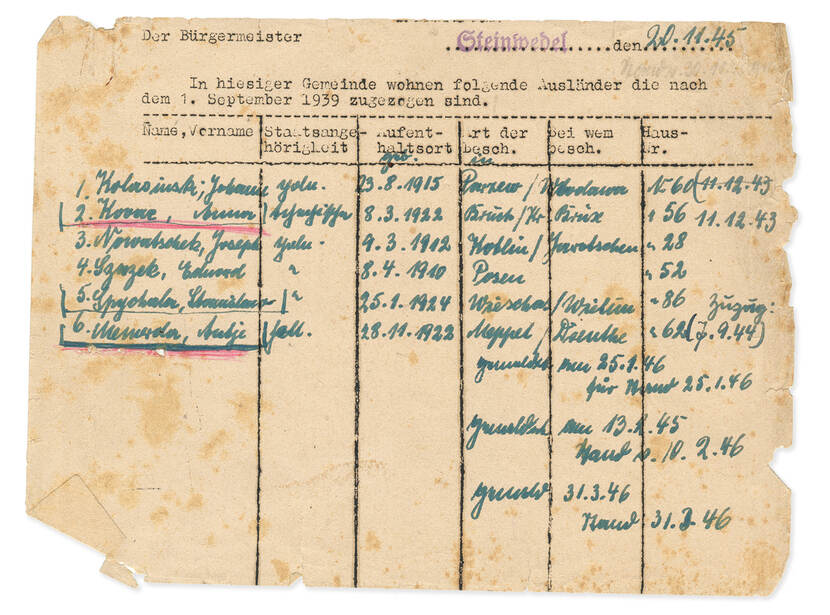 Nu hij weer bij zijn familie is, kan Ank naar Nederland. Maar dat gaat niet zo gemakkelijk. Begin 1946 krijgt ze bericht dat ze eerst naar een kamp in Osnabrück moet waar alle Nederlanders zich moeten verzamelen. “Daar was het een puinhoop, er was niets te eten, het stikte er van het ongedierte en er heerste tyfus. We zijn 's avonds met een paar man ontsnapt, naar het station gelopen en op een goederentrein gesprongen. Terug naar tante Mien.