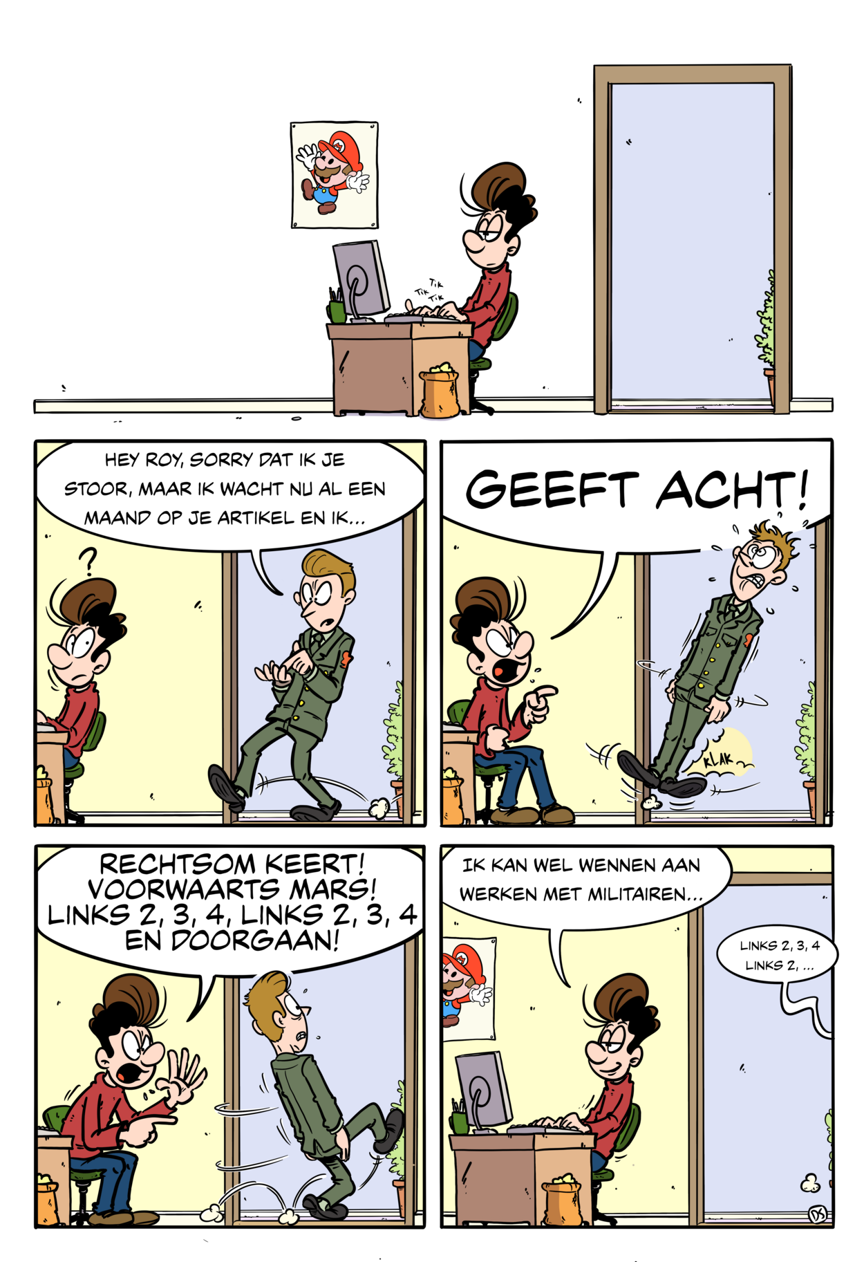 De Defensiekrant heeft een nieuwe medewerker. En wel in de vorm van de ietwat onhandige en tikkeltje lompe stripfiguur Roy. Zijn ervaringen bij de krijgsmacht worden iedere 2 weken verteld in deze strip.