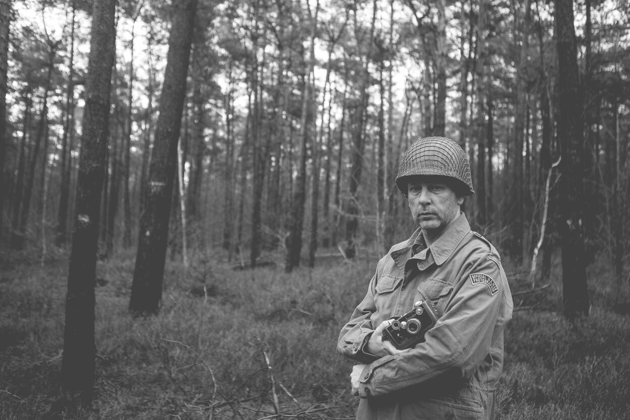 Dat veranderde in 2018, toen ik zelf een uniform aanschafte om als re-enactor mee te doen. Sindsdien ben ik bij tijd en wijle een Amerikaanse oorlogsfotograaf. Ja, die had je in die tijd ook al. Bijvoorbeeld Robert Capa."