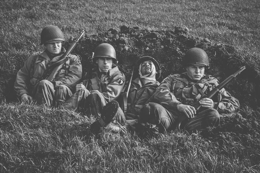 Bovendien zijn veel re-enactors in groepen aangesloten bij verenigingen. Die groepen vertolken vaak 1 historische tijdsperiode en trekken samen op. Ik heb hier bewust niet voor gekozen, want de ene dag haak ik aan bij Amerikaanse geallieerden en de andere dag maak ik foto’s bij de Duitse bezetters.”
