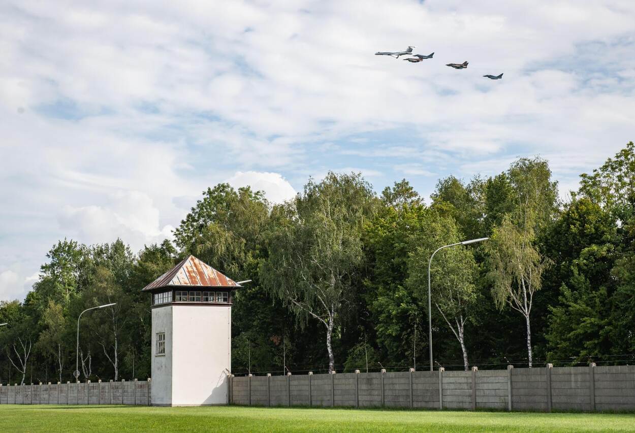 Tijdens de speciale formatievlucht vlogen de toestellen ook over het vroegere concentratiekamp Dachau. Hier vond later een herdenking plaats.