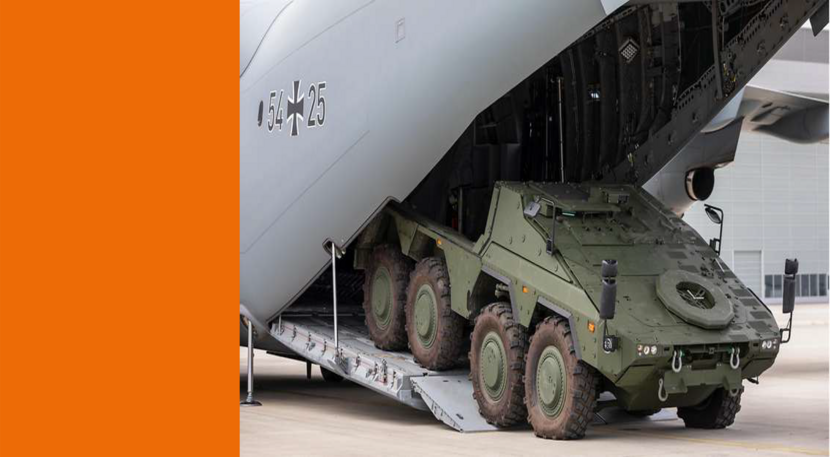 De Bundeswehr onderzoekt of de Boxer past in hun eigen militaire transportvliegtuig, de A-400M. De oosterburen willen weten of het pantservoertuig ook overgevlogen kan worden naar een inzetgebied, in plaats van over land of zee.