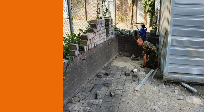 Militairen van 41 Pantsergeniebataljon, een onderdeel van 13 Lichte Brigade, hebben hun vroegere collega's de helpende hand toegestoken bij het opknappen van het ontmoetingscentrum 'De Treffer'. De binnenplaats van het centrum moest dringend opnieuw worden bestraat en die klus kan je best overlaten aan genisten.
