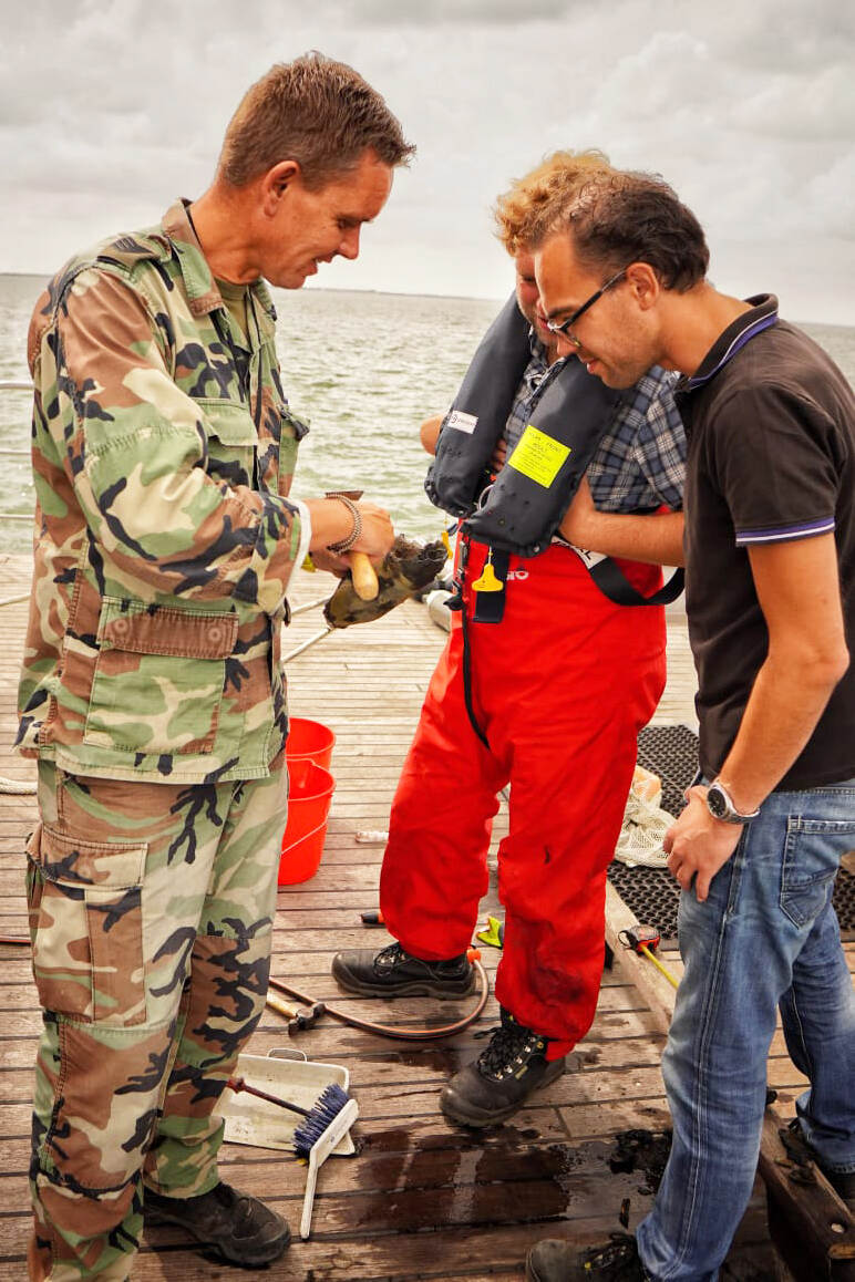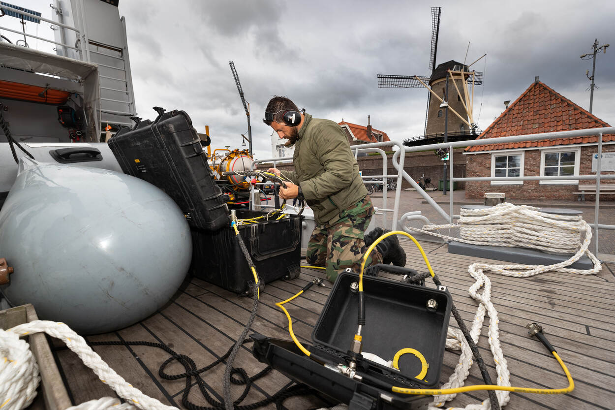 Een dag later wordt er ook munitie gevonden, waaronder .50 kogels, artilleriegranaten en een mijn. “Wat we vinden, gaat na aankomst in de haven direct door naar een speciaal opslagterrein buiten Zierikzee", vertelt In de Braekt. “Daar werkt een tweede ploeg van de EOD. Zij snijden op verzoek van TNO de munitie door met watersnijapparatuur op de plekken die zij willen.”