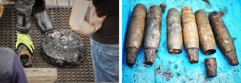 'Uit de plakjes munitie kunnen wij afleiden hoe het materiaal er na meer dan een halve eeuw onder water aan toe is'