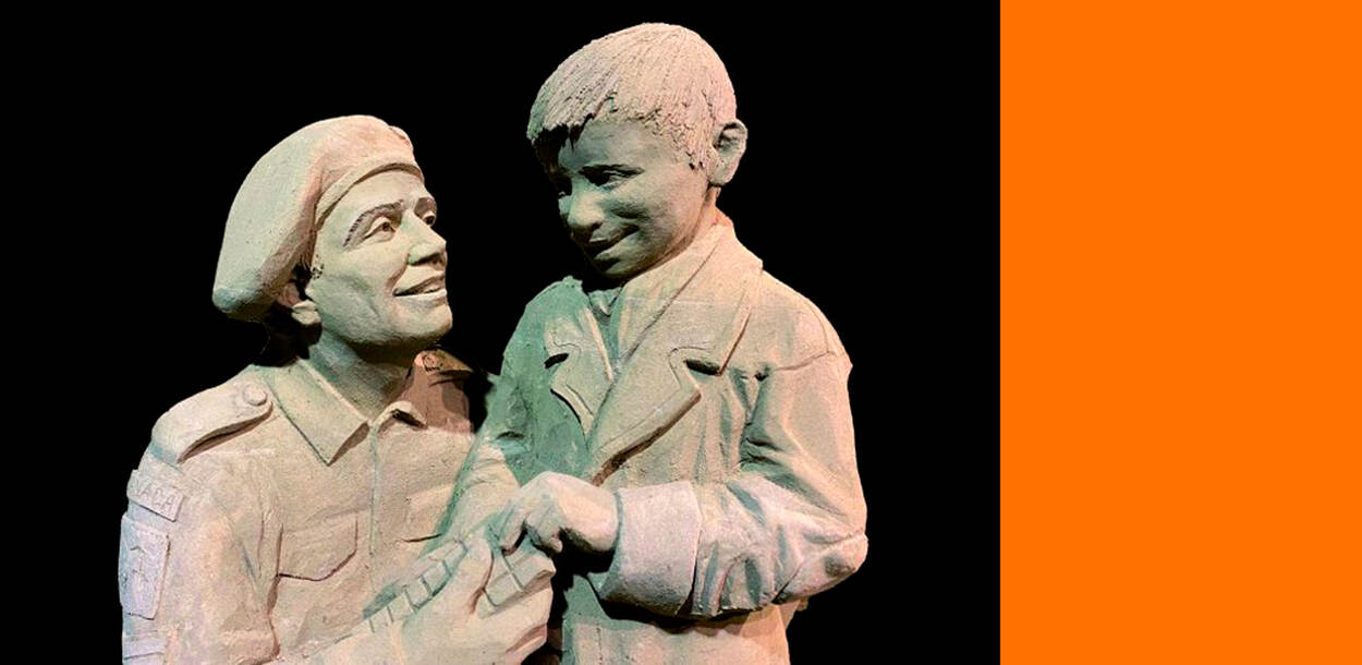 Het jaarlijkse Zandsculpturenfestival in Garderen staat dit jaar in het teken van ’75 jaar vrijheid’. In tal van oorlog- en bevrijdingstaferelen van 11 meter breed en 5 meter hoog zijn een slordige 140 vrachtwagens met zand verwerkt.