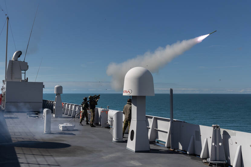 Een Stingerteam van het Defensie Grondgebonden Luchtverdedigingscommando vuurt vanaf het Landing Platform Dock Zr.Ms. Johan de Witt een raket af op een doelvliegtuig. Tegelijkertijd drukt sergeant Aaron Zwaal op zijn ontspanknop om er een mooi beeld van te schieten. De luchtdoelartilleristen deden mee aan de  eskaderreis Continuation Cruise 2020, waarvoor 4 Nederlandse marineschepen 2 weken lang op de Noordzee oefenden met onder meer Nederlandse F-35’s en F-16’s, Deense F-16’s en Amerikaanse F-15’s. Ook vonden er vliegoperaties plaats met de NH90 boordhelikopter en met een Belgische Alouette III. Voor de kust van Den Helder werden onder leiding van het Korps Mariniers amfibische operaties gehouden. Het Stingerschot op de foto was overigens raak.