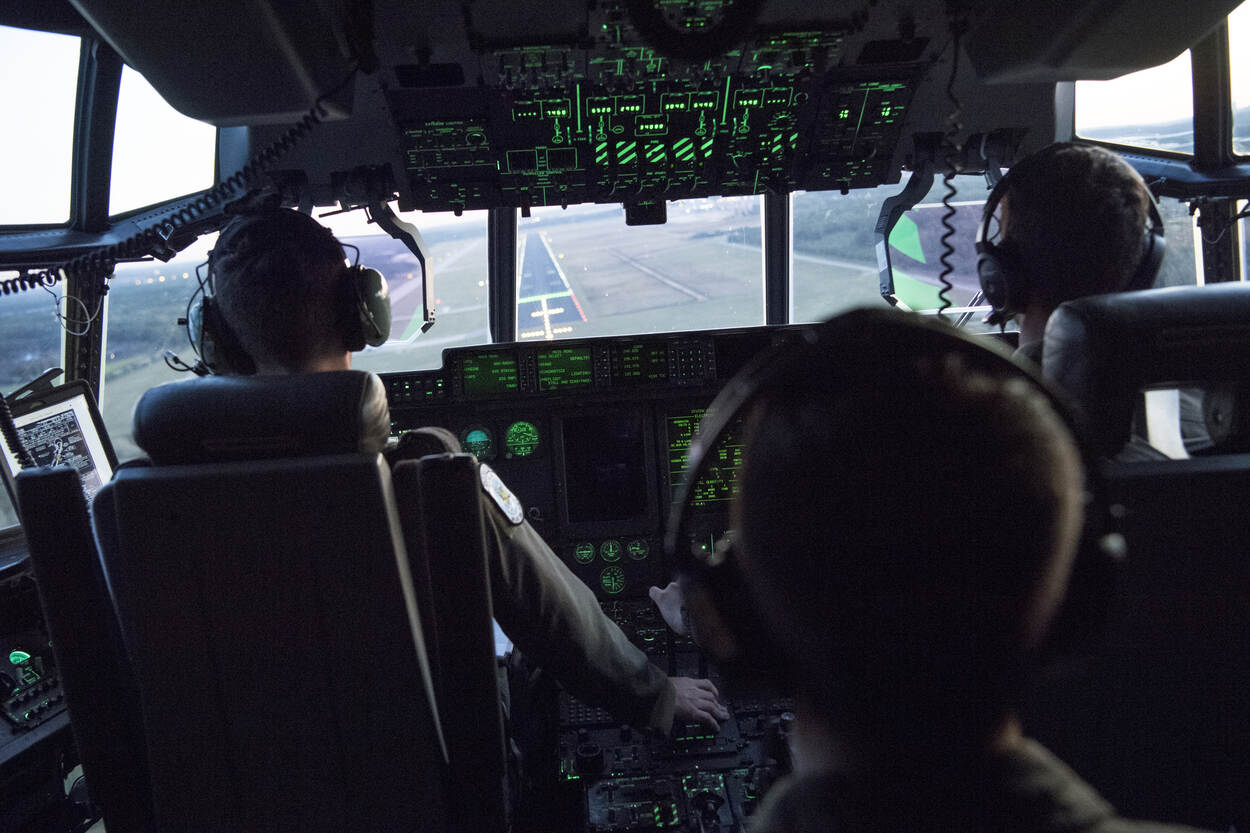 Zo ziet de runway van vliegbasis Eindhoven er uit net voor de landing. Falcon Leap inspireerde niet alleen Nederlandse fotografen. Ook Amerikaanse collega’s vonden in de oefening aanleiding de camera’s te laten klikken. Heel toepasselijk is deze opname vanuit een C-130 Hercules van 37th Airlift Squadron, die de oefening breed ondersteunde. Thuisbasis van de eenheid is Ramstein Air Base in Duitsland en Staff Sergeant Kirby Turbak tekende voor het beeld.