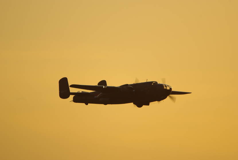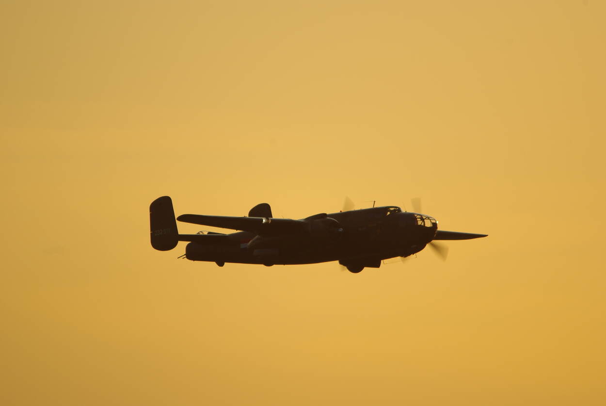Alleen al het geluid van zijn twee zwaar dreunende Wright R-2600 Cyclone motoren brengt liefhebbers in acute staat van opwinding.  We hebben het over de B-25 Mitchell bommenwerper van de Koninklijke Luchtmacht Historische Vlucht.  De nog vliegende oudgediende van vaderlandse bodem maakte een fly-past over lichtstad Eindhoven ter herdenking van de bevrijding op 18 september 1944. Maikel de Vaan nam de moeite de redactie te verblijden met mooi beeld. Hartelijk dank daarvoor.