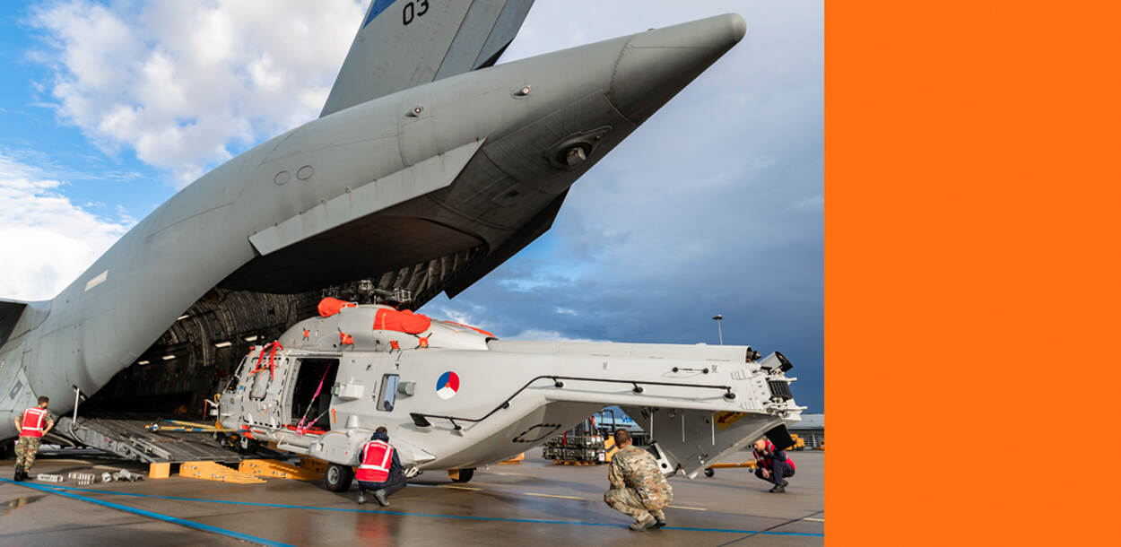 De NH90 werd op vliegbasis Eindhoven gereed gemaakt voor de vlucht met de C-17. Het transportvliegtuig was 1 van de 3 vliegtuigen van het gezamenlijke NAVO-programma Heavy Airlift Wing op de Hongaarse vliegbasis Pápa.