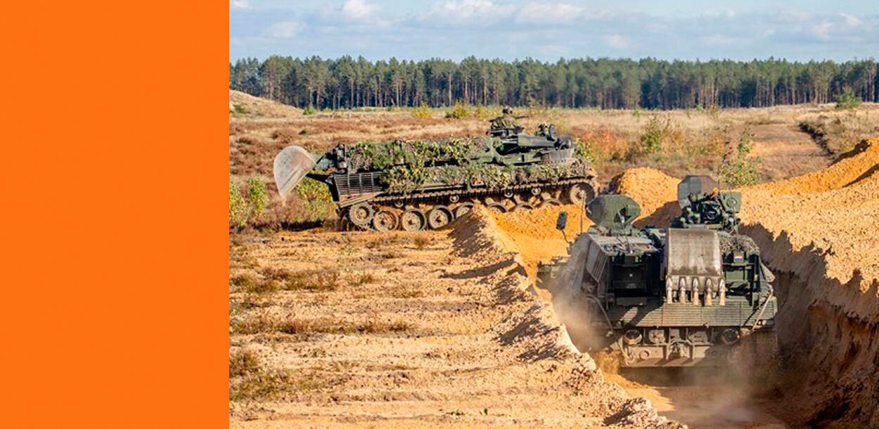 De Nederlandse Kodiak-geniedoorbraaktank en Duitse Pionierpanzer 2A1 Dachs zorgden samen voor de terreinversperring die vijandelijke eenheden tijdens een aanval moet tegenhouden.