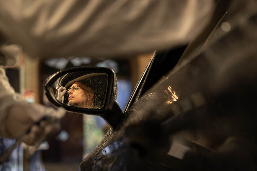 Altijd leuk om iets aparts te doen met een inmiddels gewoonste zaak van de wereld: COVID-19 monsters afnemen in een teststraat. Op beeld gaat het om een oefenstraat in een loods op de Korporaal van Oudheusden kazerne te Hilversum. Hier worden militairen opgeleid om de inmiddels landelijk ingevoerde tests uit te voeren. Luchtmachtsergeant Aaron Zwaal was erbij