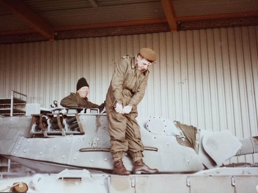 Wim Boeije stuurde de redactie een kiek uit de oude doos. Het gaat hier om een hydraulisch systeemtest in een vriescel van een Leopard 1V midden jaren 80. Op het moment van de opname was de temperatuur om precies te zijn -31 graden Celsius. Bij gebrek aan een eigen faciliteit week Defensie destijds uit naar een particuliere locatie. Maar waar deze foto is genomen, kon de redactie niet achterhalen.