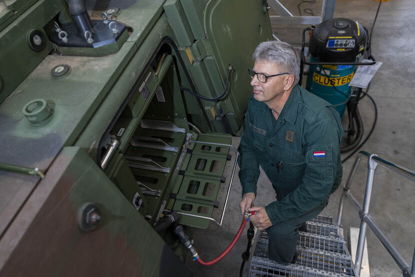 Landmachtmonteur Claus Vierheller (63) heeft een stuk gereedschap ontwikkeld voor het Boxer-pantserwielvoertuig. Met een slimme stofzuiger brengt hij een klus van 2 werkdagen terug naar 45 minuten. Daarmee bespaart Defensie 2.200 manuren per jaar.