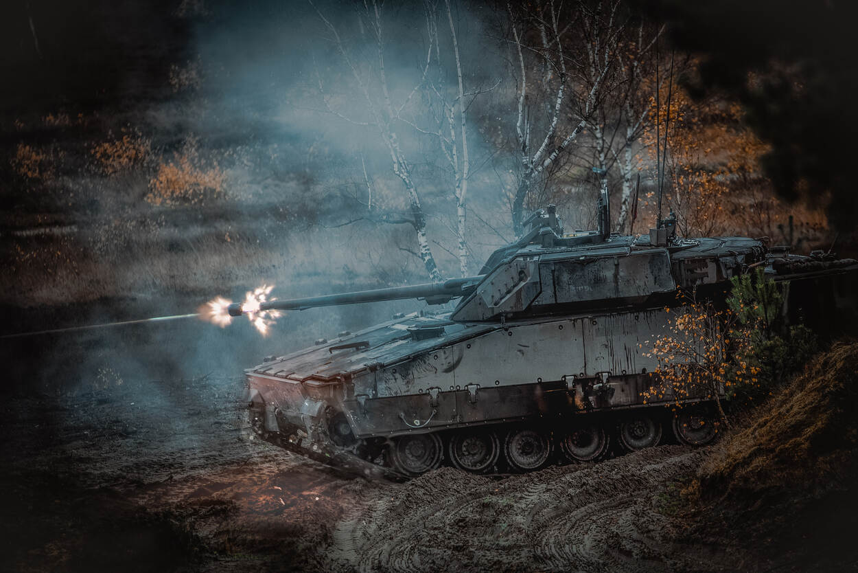 Wederom een creatief en prettig-om-naar-te-kijken beeld van soldaat-1 Wessel Zuijderduin. Hij schoot de vurende CV90 tijdens de onlangs gehouden SOB/SOMS (Schieten op Bergen/Schieten op Munster-Süd) op het Duitse oefenterrein Bergen-Hohne. Hier certificeerde 44 Pantserinfanteriebataljon Johan Willem Friso zich op pelotonsniveau voor de uitzending naar Litouwen volgend jaar.