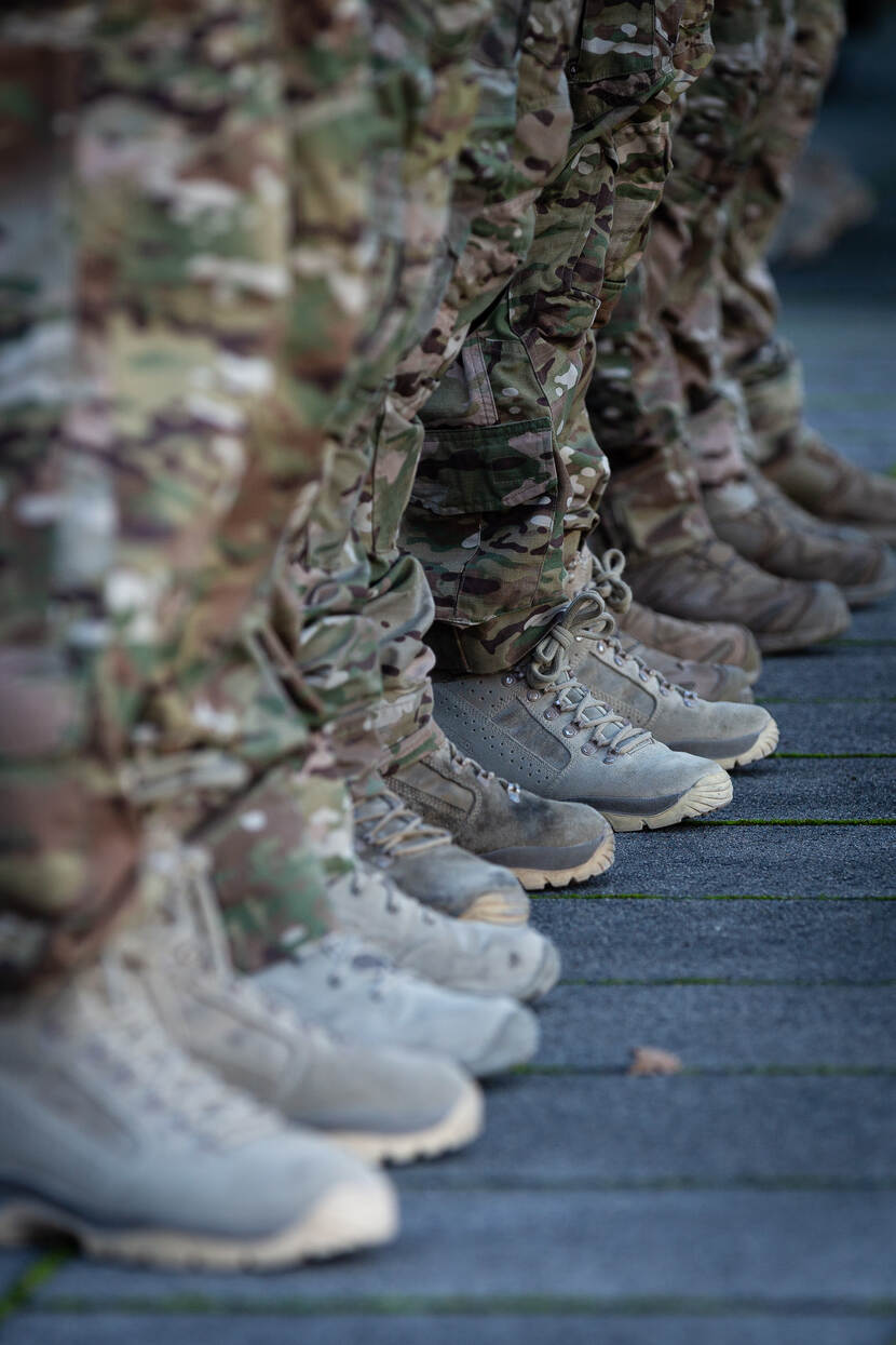 54 militairen van NAVO-operatie Resolute Support in Afghanistan keerden onlangs terug op eigen bodem. De missie richt zich op het uitbouwen van leger en politie om zo meer stabiliteit in het centraal Aziatische land te bereiken. Vanwege het heimelijke karakter van de missie beperkte defensiefotograaf korporaal Gregory Fréni zich tot het vastleggen van het schoeisel van betrokkenen.