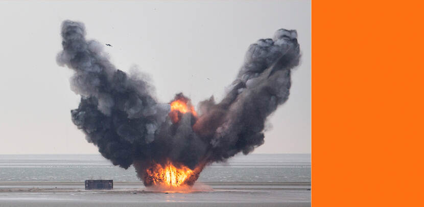Bij de oefening deze week wierpen jachtvliegtuigen van de Vliegbases Leeuwarden en Volkel Mark 82 bommen van 225 kilo af (zie foto). Chinook en Cougar helikopters schoten met hun boordwapens. Dat gebeurde steeds 's middags, de helikopters deden hun schietoefeningen ook 's avonds onder begeleiding van de vuurleiders van de range.