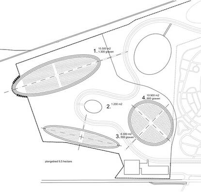 Op deze schets is te zien hoe ver er nog kan worden uitgebreid.