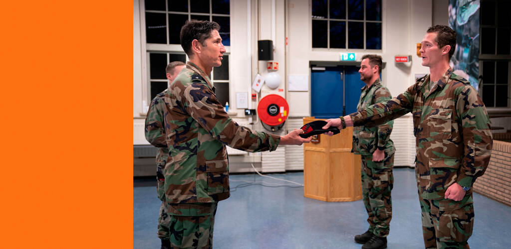 Bij de eerste uitreiking ging het om een her-uitreiking van de baret. De mannen waren al eerder marinier, maar hadden hun baret moeten inleveren toen ze verpleegkundige werden. Het Korps Mariniers telt zo'n 120 gewondenverzorgers, potentiële verpleegkundigen die zich nu dus medisch kunnen ontwikkelen zonder hun mariniersbaret de verliezen.