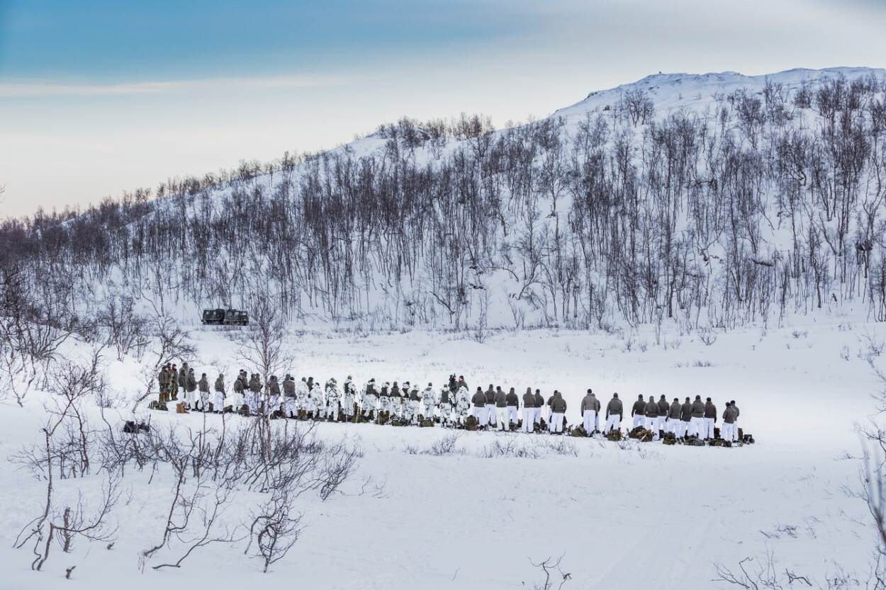 Leden van het Duitse Seebataillon volgen momenteel in Noorwegen de Joint Arctic Training, onder leiding van het Nederlandse Korps Mariniers. Met temperaturen ver onder nul leren zij op het oefenterrein Mauken optreden en overleven onder extreme omstandigheden. Op de foto staan zowel Duitse als Nederlandse militairen, tijdens een les camouflage in de openlucht. Fotograaf sergeant Cristian Schrik tekent voor deze mooie plaat.
