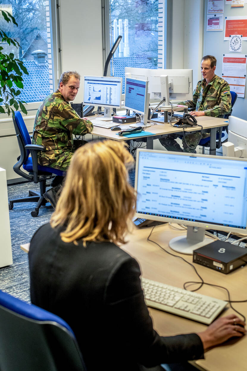Die club begon met drie personen en bestaat inmiddels uit 30 medewerkers, waaronder twee landmachters. Dagelijks volgen zij het prikken en de progressie. Wijzend naar zijn scherm vertelt majoor Lap: “We zien hier met regelmatige updates hoe het ervoor staat op de priklocaties. Bijvoorbeeld hoeveel voorraad is er nog en welke afspraken er staan. Wij bepalen of we een tray die kant op moeten sturen.”