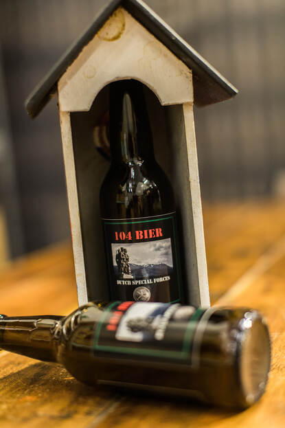 De oorsprong van de naam wordt zeker niet vergeten. “Aangezien Michel is teruggekeerd bij Defensie leveren we zijn eenheid 104 Commandotroepencompagnie biertje 104. Eventueel geleverd in een wachthuisje”, zegt Erik Oortwijn.