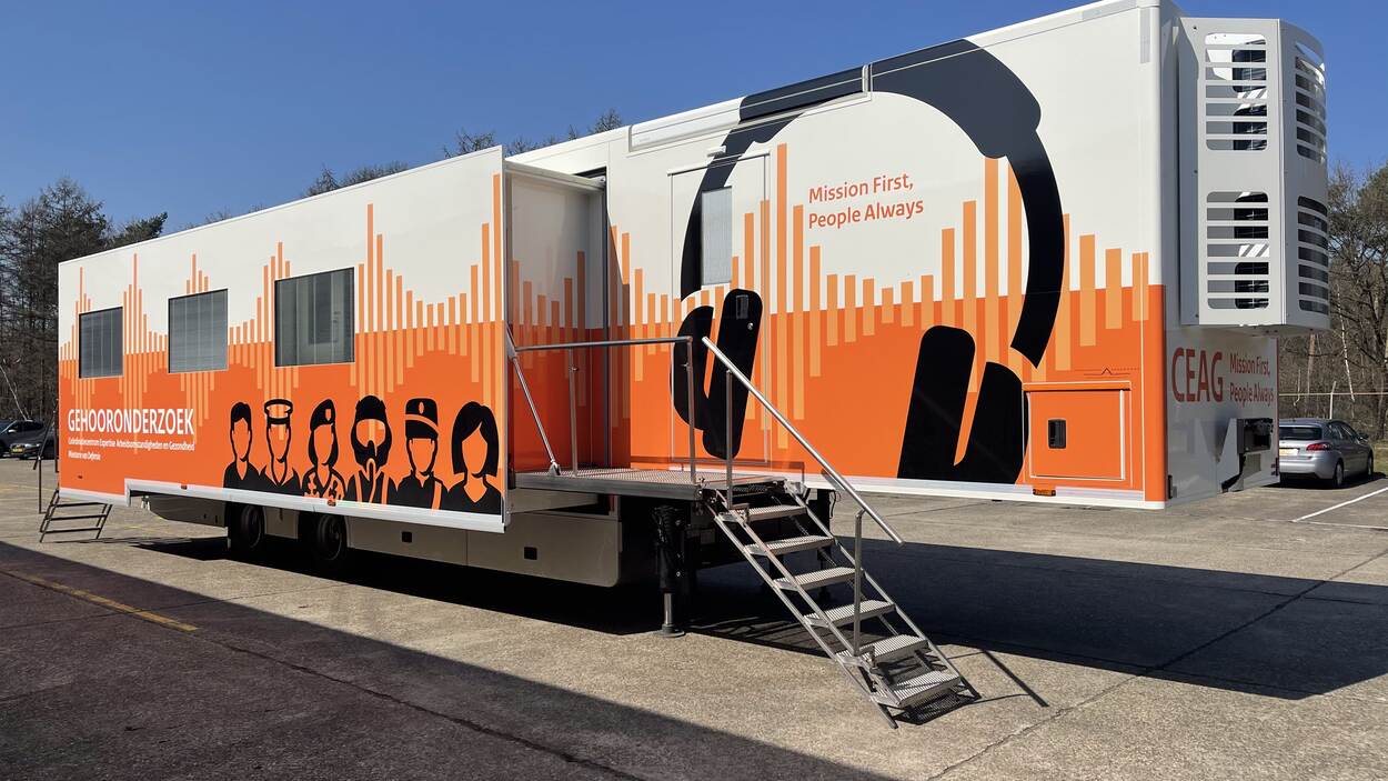 De spiksplinternieuwe, uitschuifbare gehoortestwagens van 13 bij 3,5 meter zijn voorzien van vier audiocabines en audiomaten om onderzoeken uit te voeren. De trailer is verplaatsbaar en zodoende op elke defensielocatie neer te zetten. Dat maakt ze zeker bij opleidingscentra of operationele eenheden extra waardevol, omdat daar grote groepen militairen tegelijkertijd moeten worden onderzocht.