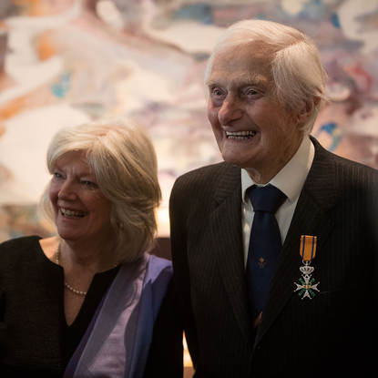 “We stonden perlex toen in 2011 de melding kwam dat er mogelijk nog een Ridder MWO in leven was. Ik was de eerste die hem, namens het Kapittel, bezocht. Er was meteen een klik, ook met zijn vrouw. Ondanks dat ik al drie jaar weg ben bij het Kapittel, bezoeken we elkaar een paar maal per jaar. Ken komt bijvoorbeeld elk jaar in mei over voor de herdenking van de capitulatie in Wageningen. Trish en hij willen niets missen. Hij is veel te bescheiden; hij spreekt nauwelijks over wat hij in de oorlogsjaren heeft meegemaakt.”