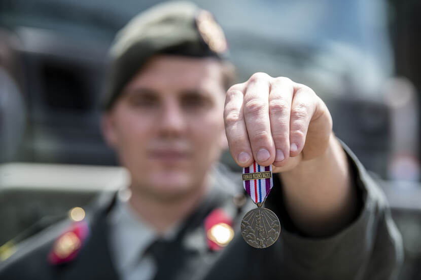 De majoor besluit: “Het uitreiken van deze medailles is enorm belangrijk. Deze mensen zijn maandenlang uitgezonden en lieten familie en vrienden achter om zich in te zetten voor Defensie. Ze hebben daar goed werk geleverd. Daar moet je gepaste aandacht aan schenken. Dat gaat nu eenmaal niet optimaal via een computerscherm.”