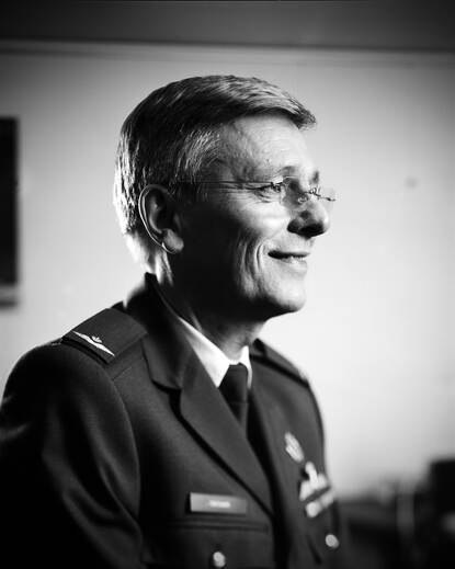 Sinds de introductie van de digitale camera wordt alles wat we zien en denken in beeld vastgelegd. In deze vliegensvlugge maatschappij zijn slechts luttele seconden nodig om honderden foto’s te maken. Defensiefotograaf sergeant Aaron Zwaal wilde daarom graag weer terug naar de basis en besloot negen defensieprominenten middels analoge fotografie te vereeuwigen.