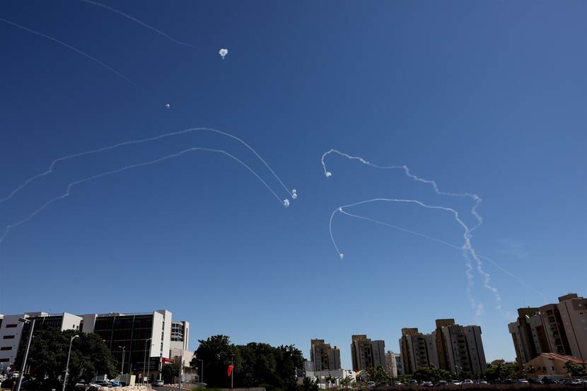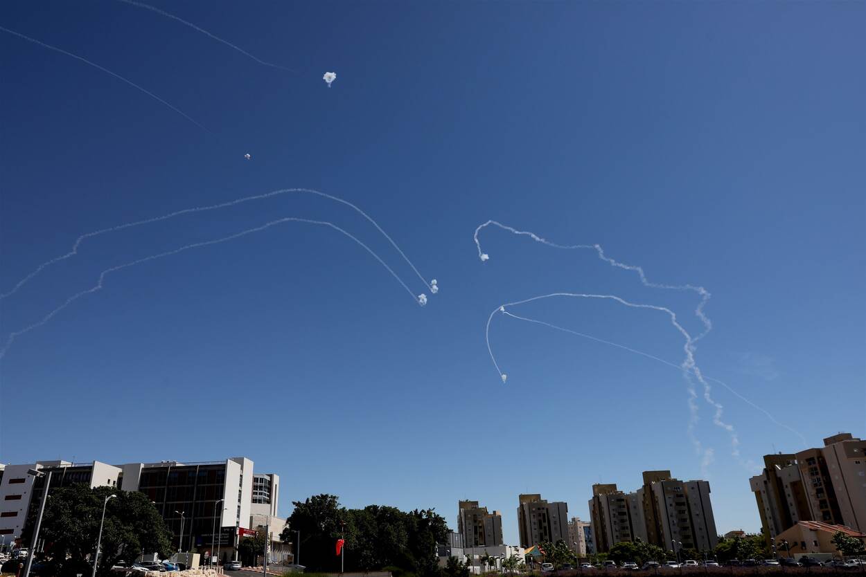 Het Israëlische Iron Dome Air Defense System onderschept raketten, zoals op deze foto in de stad Asjkelon vlakbij Tel Aviv.