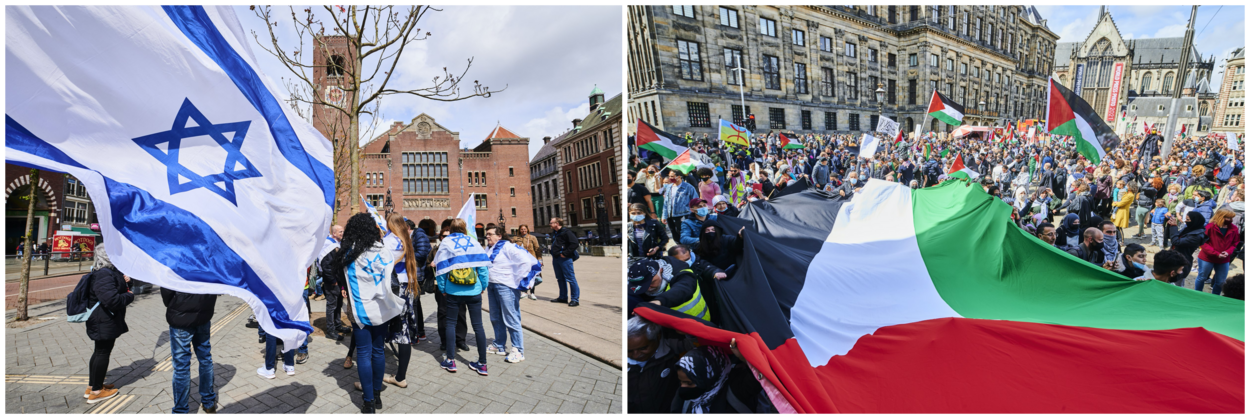 Ook in Nederland waren er protesten tegen het geweld in het Midden-Oosten. Onder meer in Amsterdam.