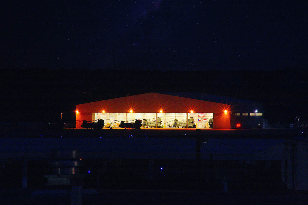 Terwijl de meeste Amerikanen nog in diepe slaap verkeerden, maakten de mannen van 302 Squadron zich op Fort Hood (Texas) klaar voor de oefening American Falcon. Jelle Sapulette tekende voor het mooie beeld van de Chinooks.
