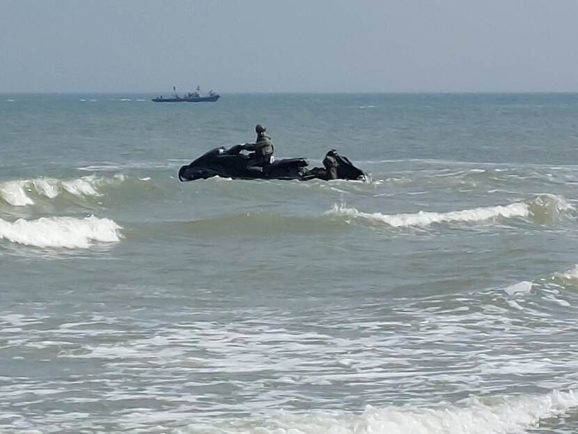 Op het strand ter hoogte van ’s Gravenzande zag René Roodhorst leden van het Korps Mariniers oefenen op het strand. Met een landingsvaartuig en twee waterscooters werden mariniers aan land gebracht en later weer opgepikt.