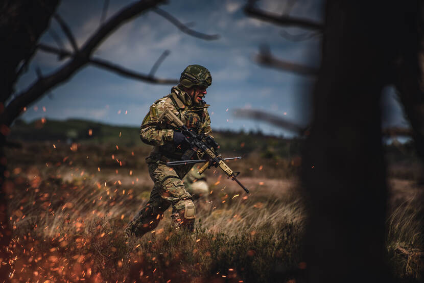 Korporaal Zuijderduin schoot dit opmerkelijke beeld tijdens de uitgestegen pelotonscertificering van 44 Pantserinfanteriebataljon Johan Willen Friso.