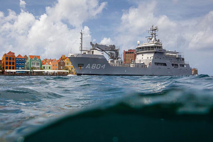 Sergeant Jasper Verolme fotografeerde onlangs in Willemstad een heerlijk kleurig plaatje van Zr.Ms. Pelikaan. Het ondersteuningsschip voor de West was op weg naar haar ligplaats op Marinebasis Parera.