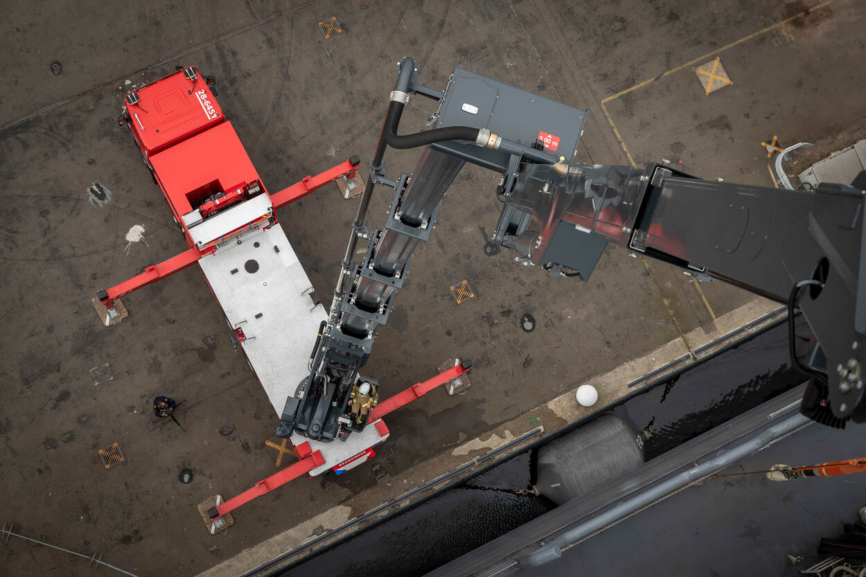 Aan het verwervingstraject zaten volgens de hoogste baas wat haken en ogen. Voordat Langenhuizen zijn aanvraag inschoot, liet hij eerst doorrekenen of de 38 ton zware hoogwerker veilig op de steigers en andere kritieke plekken zou kunnen werken. Toen daarover geen onduidelijkheden meer bestonden, en hij ook de exacte lengte en hoogte van de brandweerkazerne in gebouw Flevo had opgemeten, ging het licht voor de aanschaf op groen. “Het maximale gewicht was ook om een andere reden nog een dingetje”, vertelt Langenhuizen. Dat moest onder de veertig ton blijven, omdat je anders voor de bediening een ander type rijbewijs nodig hebt. Eentje voor een zogenoemd rijdend werktuig. “Gelukkig was dat niet aan de orde.”