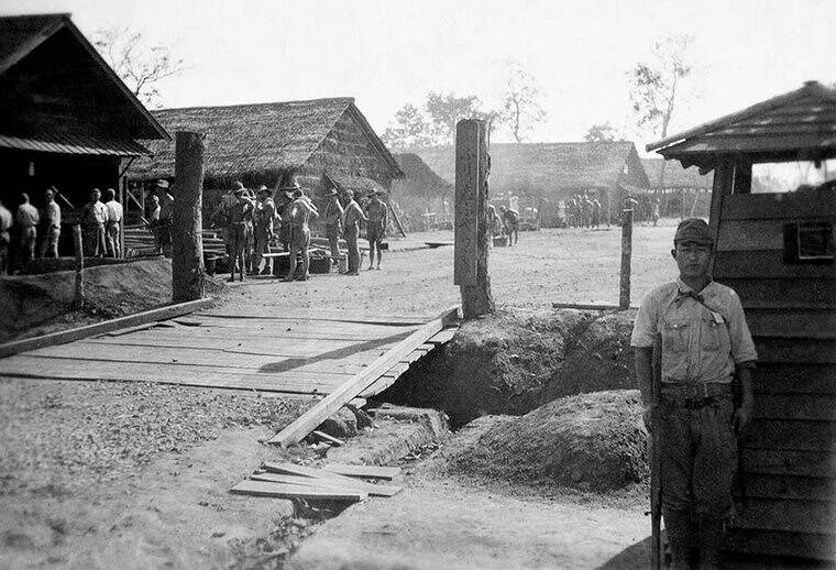 Een Japanse wacht bij POW-kamp Thanbyuzayat in Thailand, waar Henk Bouwens gevangen zat. Foto: Javapost.