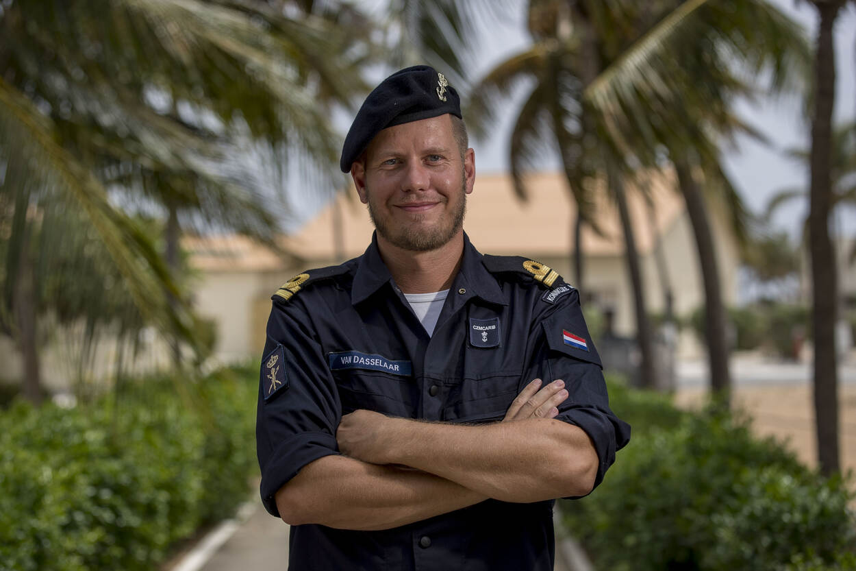 Luitenant ter zee der 2e klasse oudste categorie Jeroen van Dasselaar houdt zich als neventaak bezig met de verduurzaming van Marinierskazerne Savaneta. Binnenkort neemt hij een jaar verlof om zich in de burgermaatschappij bezig te houden met zonnepanelen.