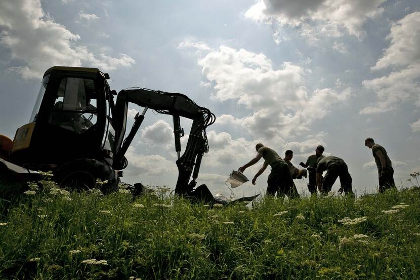 Daarom trokken woensdag opnieuw zo’n 180 militairen van 13 Lichte Brigade uit Oirschot zuidwaarts. In snel oplopende temperaturen werkten de infanteristen en genisten zich drie dagen lang onvermoeibaar in het zweet.