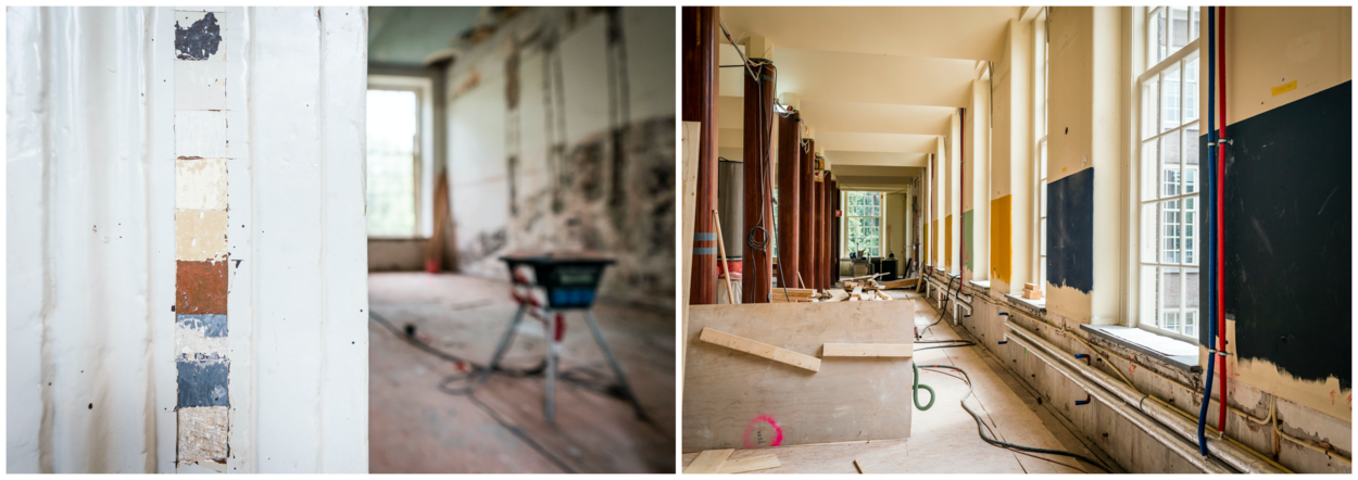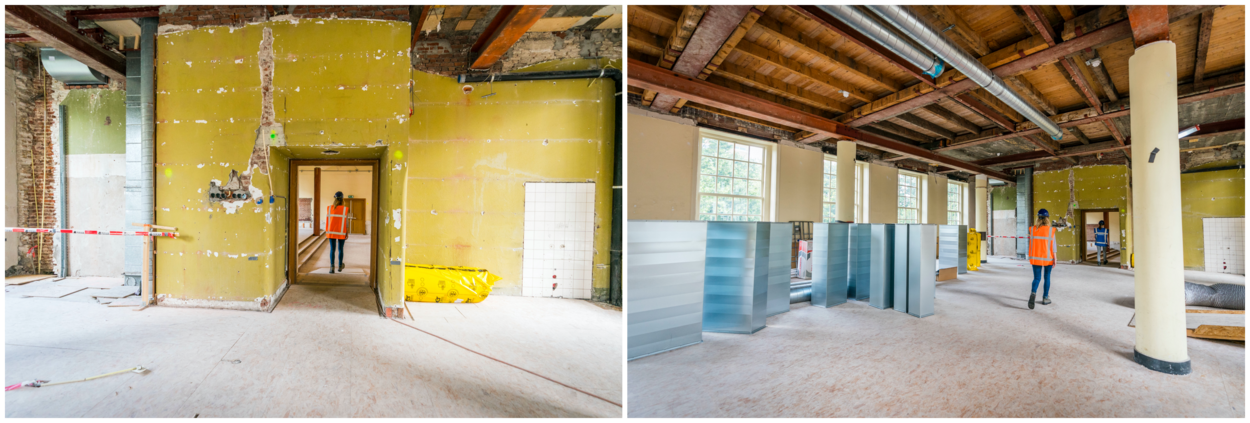 De verbouwingen vinden plaats op de eerste en tweede verdieping en de zolder. De begane grond en de kelder zijn nog niet volledig aan de beurt maar worden wel brandveilig gemaakt. Ook worden alvast technische voorbereidingen getroffen voor bijvoorbeeld water en elektra. Én, niet geheel onbelangrijk: de lelijke, goedkoop ogende voorzetwand die de hal scheidt van het bedrijfsrestaurant wordt verwijderd.