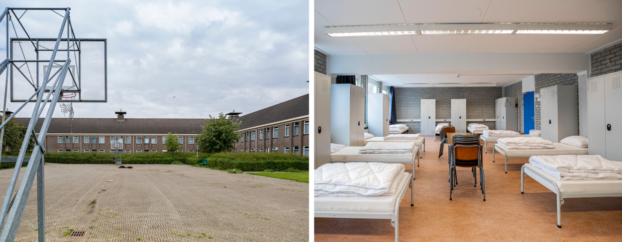 De opvanglocatie op de Willem Lodewijk van Nassaukazerne in het Groningse Zoutkamp. Foto’s gemaakt net voordat de eerste evacués aankwamen. Hier zijn nu circa 470 personen ondergebracht.