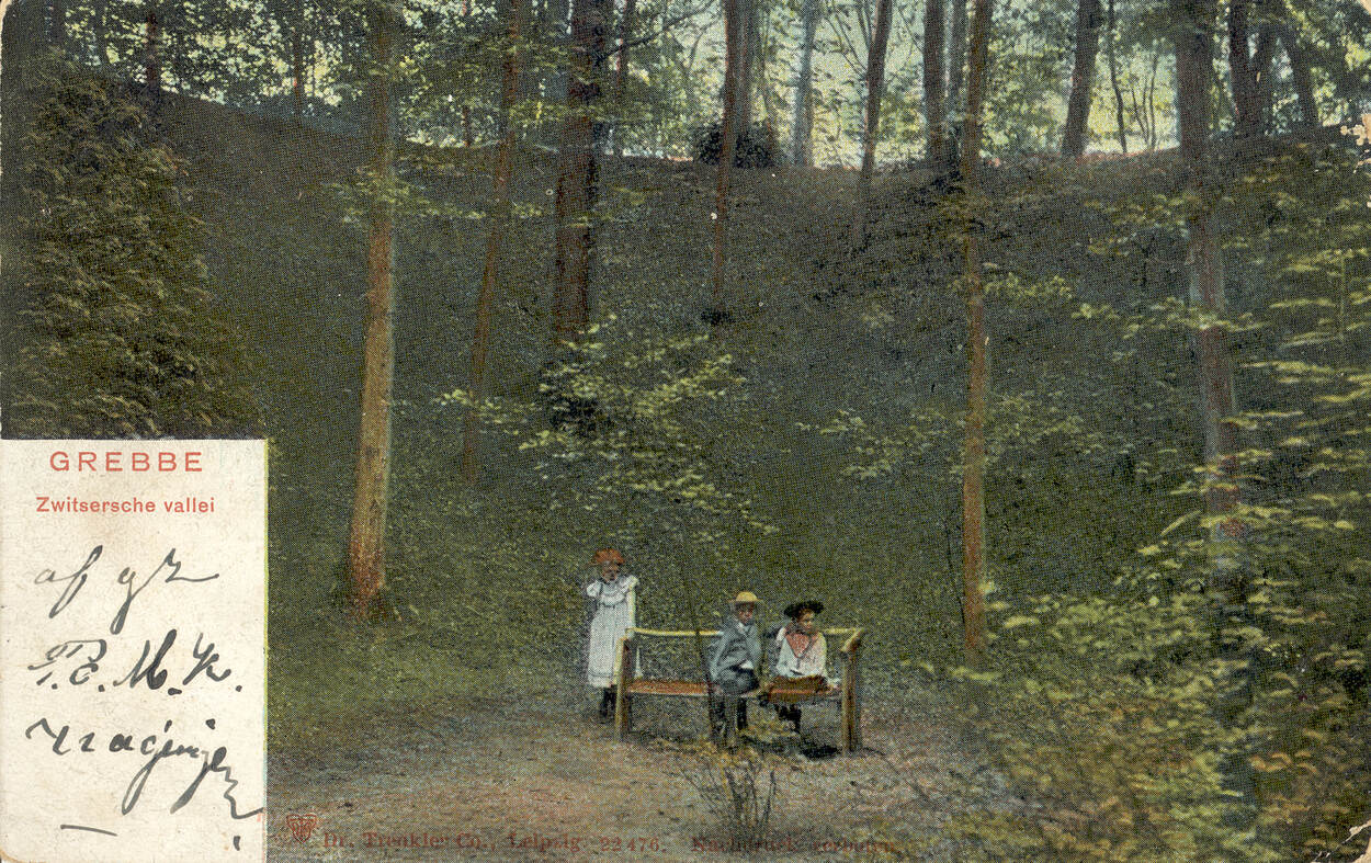 Onder het bankje op deze historische afbeelding uit 1911 zou decennia later de schuilhut van de dienstplichtigen zijn gebouwd.